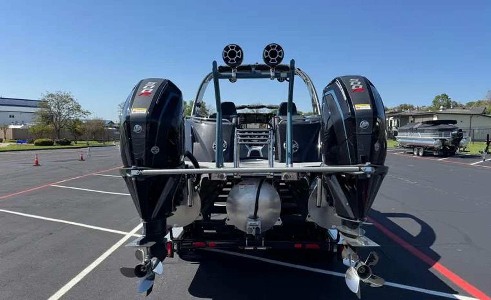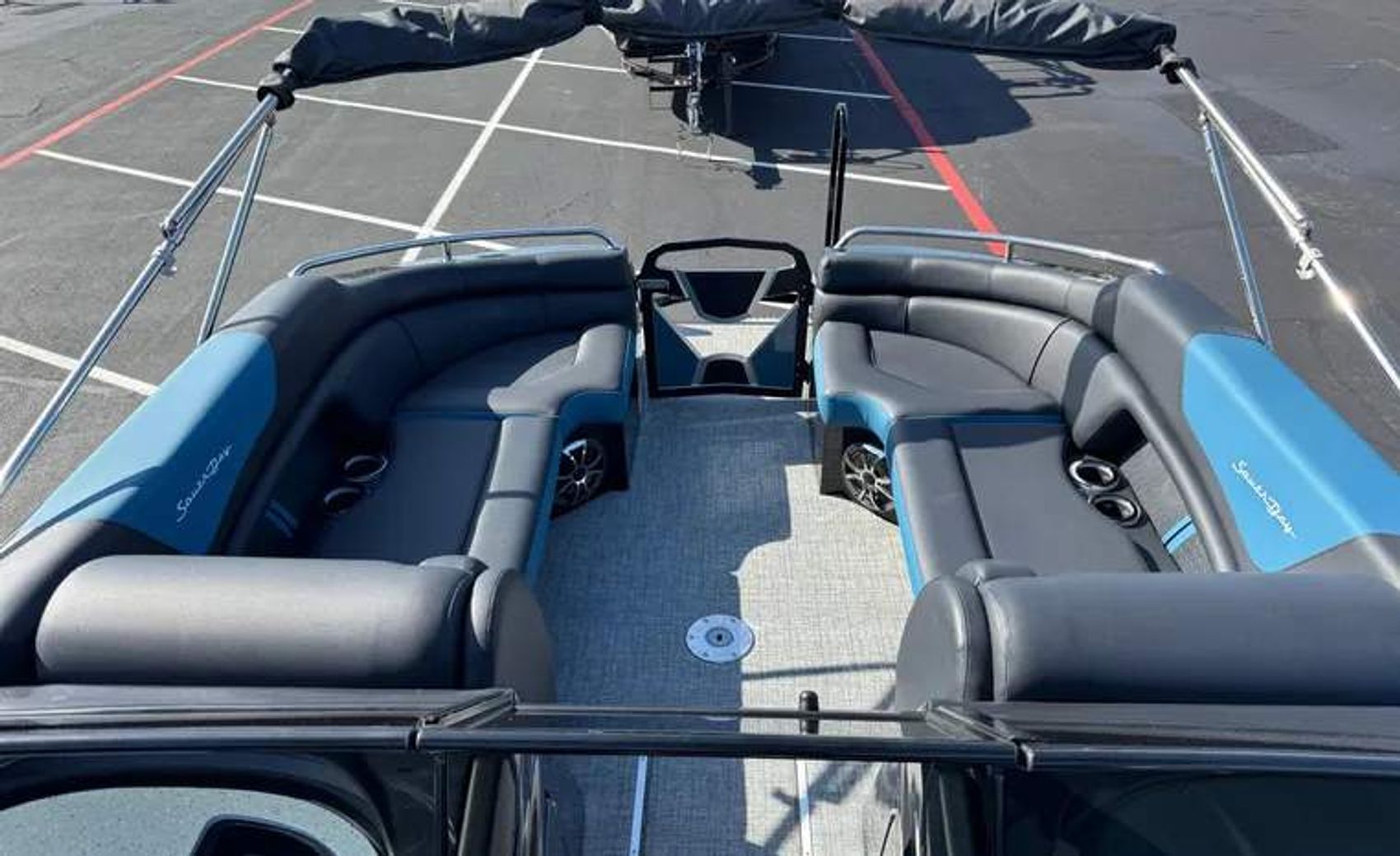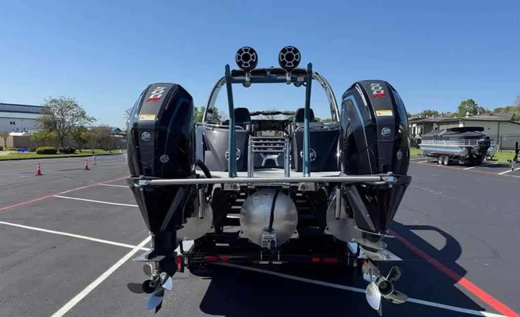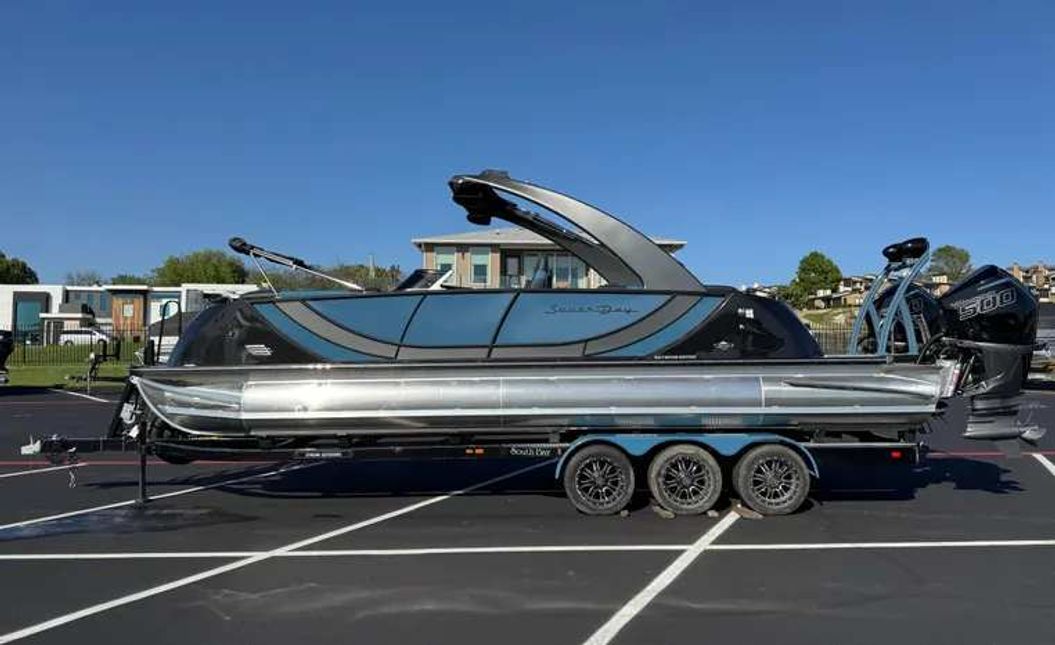 2024 South Bay Sport DC With Twin Engine 500R’s. Only 100 Of These Sport Boats Made A Year. Factory 90 MPH Boat Powered By Twin 500’s, 3 Plus Package With All The Desired Upgrades For Performance and Handling. Electric  Arch with Stereo And Bimini, Forward Bimini, Rear Ski Bar, Rear Seating, Wireless Phone Charger, Bluetooth, Hydraulic Jack Plate, Lifting Strakes, Rear Fold Down Stainless Ladder, Fresh Water System with Sink, Dual Console with Windshield, In Floor Storage and More.