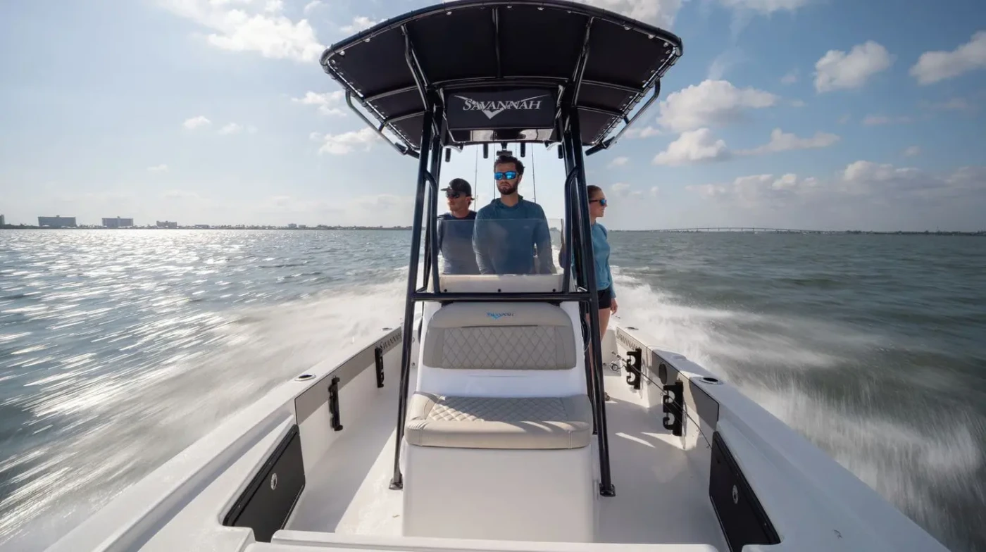 We understand that accessing the "skinny water" is crucial for successful Texas inshore fishing. Our Hybrid Skiffs combine the maneuverability and low profile of a traditional skiff with the robust, high-quality fiberglass construction of Savannah Boats. Our specialists in Rockwall, TX, will expertly rig your skiff with the perfect shallow-water accessories, including trolling motors, power poles, and specialized electronics.