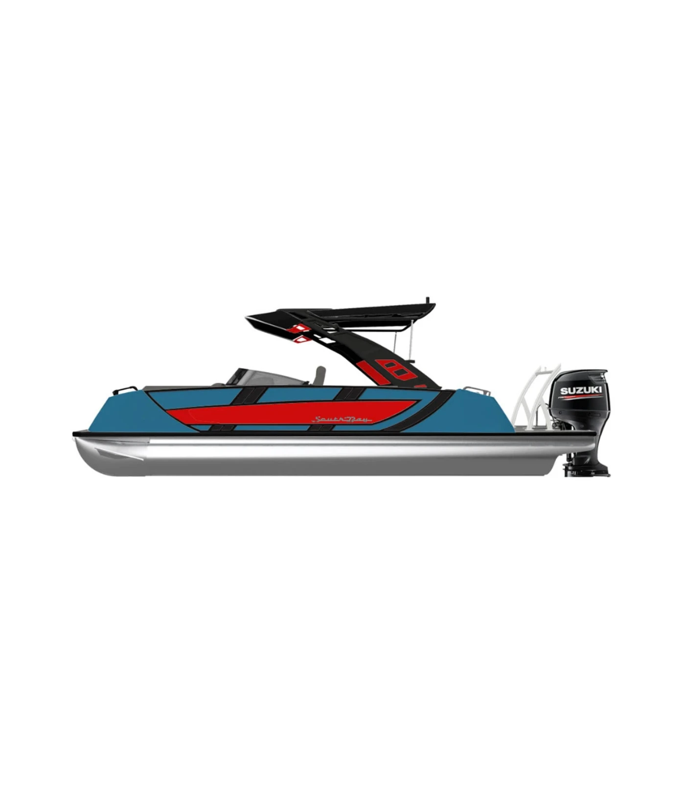• Aggressive, Athletic Styling: The Sport Series stands out with bold graphics, colored aluminum paneling, and aggressive furniture styling that appeals to the watersports enthusiast. It merges the comfort of a pontoon with the visual appeal of a performance towboat.