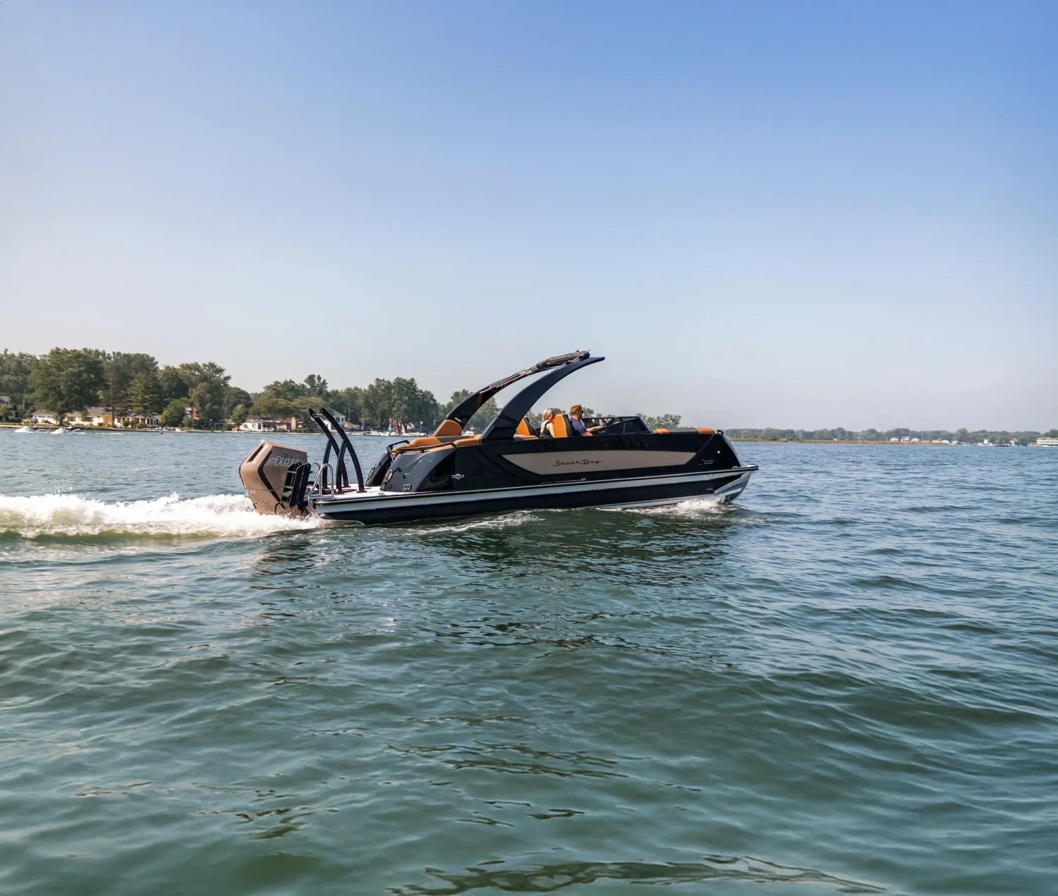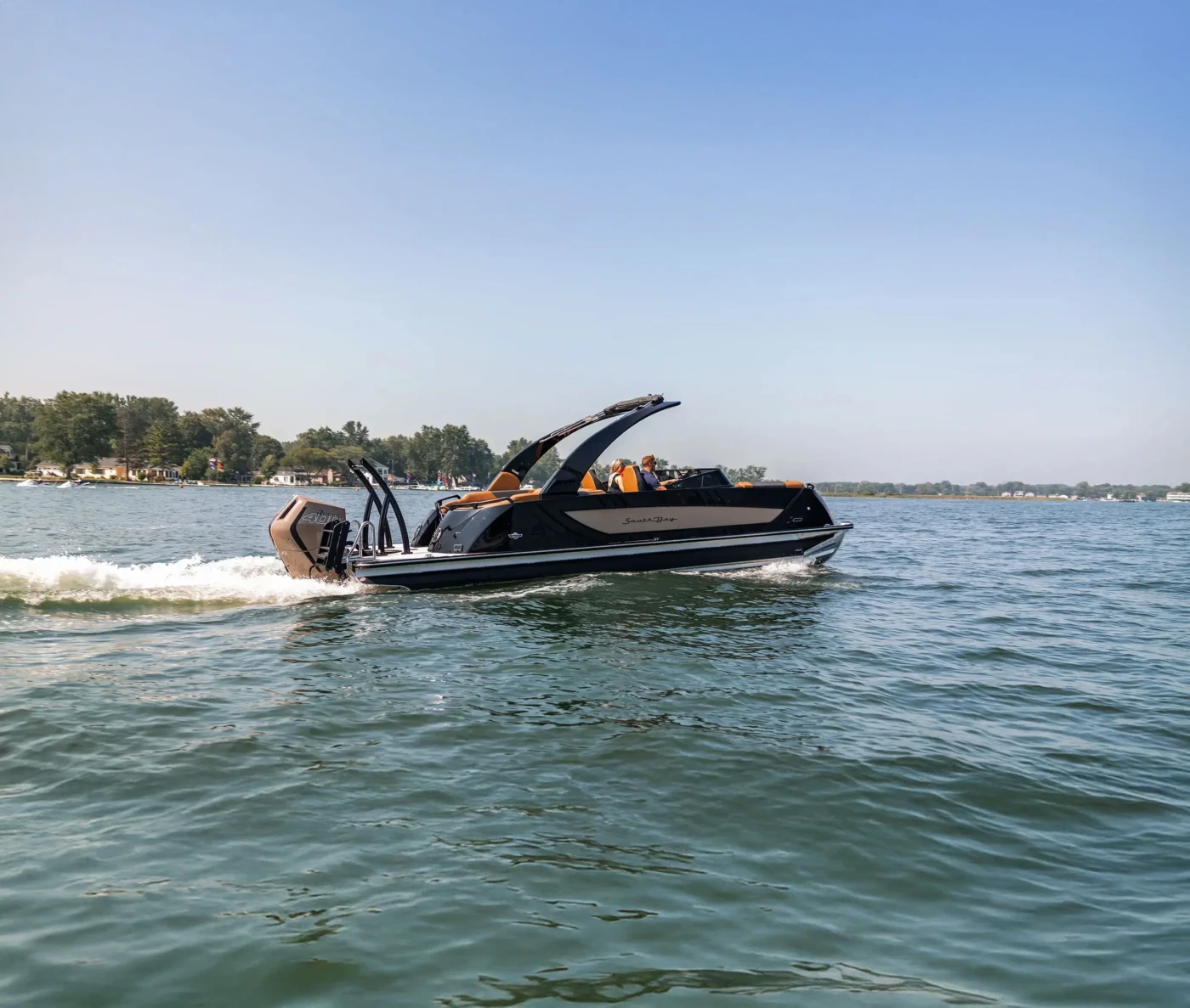 • Optimized Tritoon Performance: The Sport Series utilizes an enhanced tritoon hull design, often including performance strakes and underdeck skinning, which allows the boat to plane faster, maintain steady speed under heavy load, and corner with the agility expected of a dedicated tow boat.