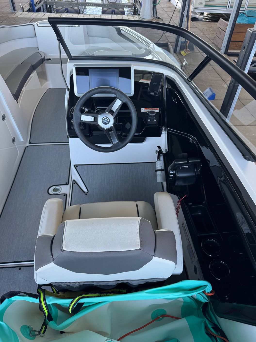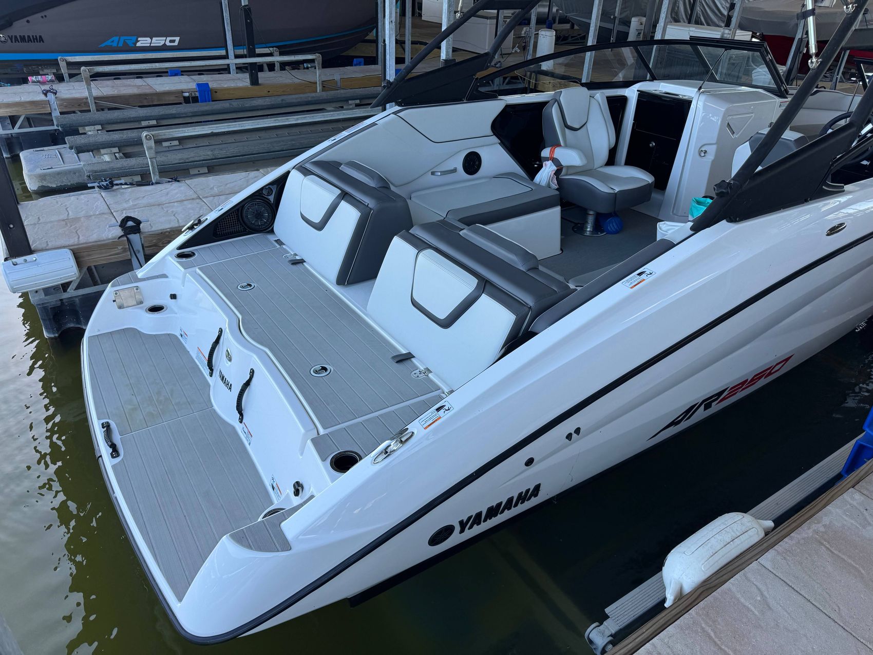 2024 Yamaha ar250 Jet Boat For sale. Powered by Twin Yamaha High Output Motors, Rear Seating, Front Seating, Walk Thru Windshield, Stereo, Bimini, Boat Cover and Trailer.